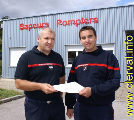 clervalois. Laurent Martins, 28 ans, domicilié à Clerval, sapeur pompier volontaire depuis 12 ans, a été aussi JSP (jeune sapeur pompier) pendant 6 ans à Sancey. C'est en 2001 qu'il a intégré le centre de secours de Clerval où il se dévoue, en plus, comme moniteur de secourisme. M. Martins a obtenu le diplôme de chef d'agrès au terme de 120 h de stage et de formation spécifique. Il pourra donc prendre désormais la responsabilité d'un véhicule (fourgon-pompe, ambulance, ...) et de son équipage, pour intervenir sur les sinistres, les accidents de la route, les incendies, les secours aux blessés ou aux malades. Félicitations à Laurent Martins, et à Christophe Monin qui avait obtenu précédemment le même diplôme. |